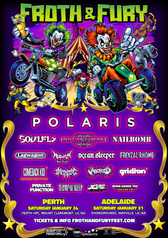 Legends like Voyager, Abramelin, and Shai Hulud join the fray, alongside Perth’s finest underground acts.