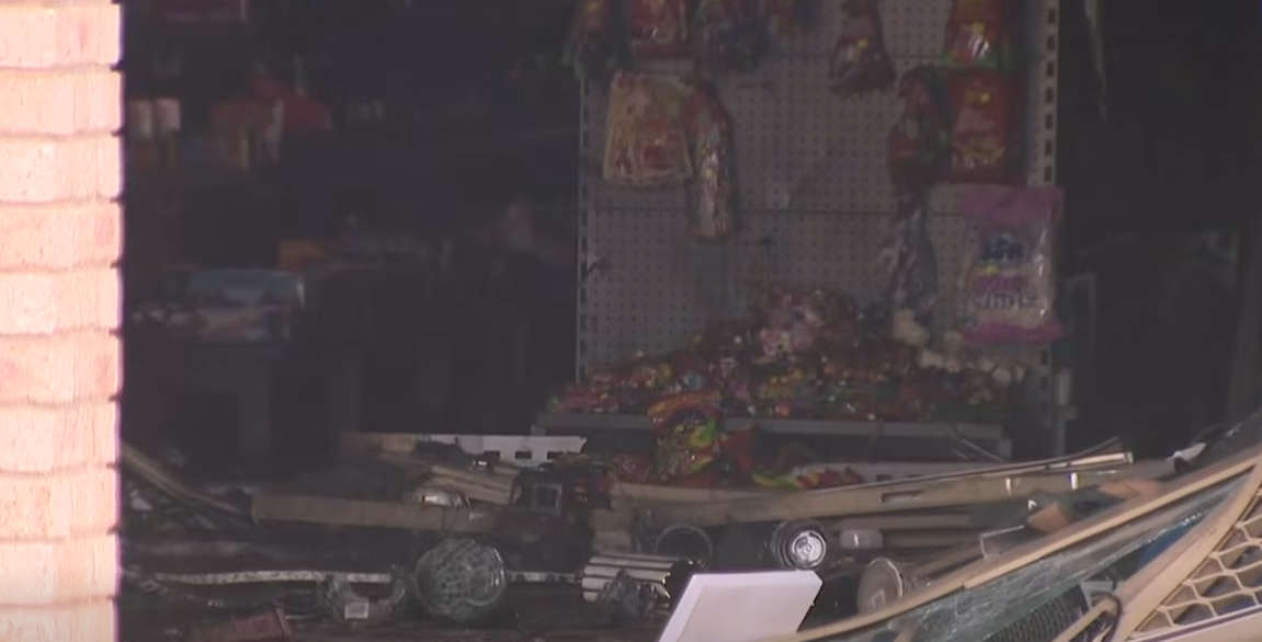 Police say the vehicle caused extensive damage to the shop.