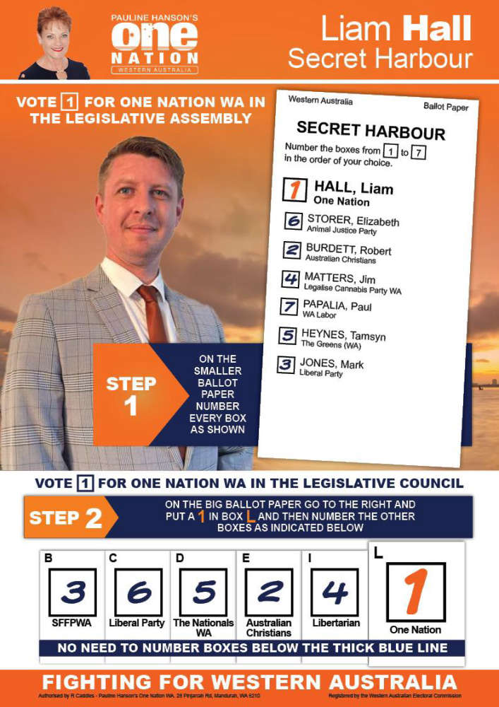 Liam Christopher Hall was a One Nation candidate for Secret Harbour in the 2025 state election. PIC: Facebook