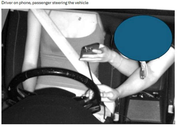 The cameras captured some shocking behaviour including a front seat passenger not wearing a seatbelt while cradling an unrestrained baby, a truck driver with no hands on the steering wheel, using a laptop and a mobile phone, not wearing a seatbelt while driving 100 kilometres per hour on the Mitchell Freeway and a driver painting their finger nails.